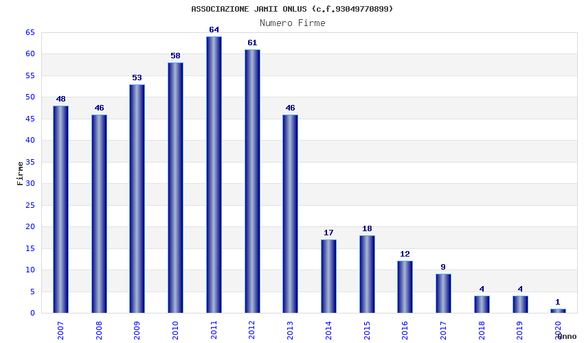 Anno Firme Importi Media Naz. Reg. Prov. Comu.