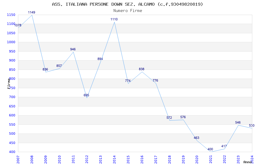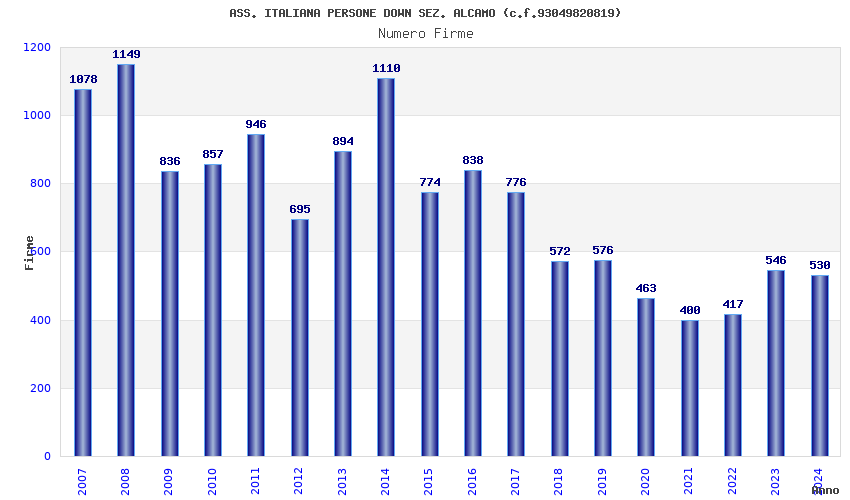 | Anno | Firme | Importi | Media | Naz. | Reg. | Prov. | Comu. |