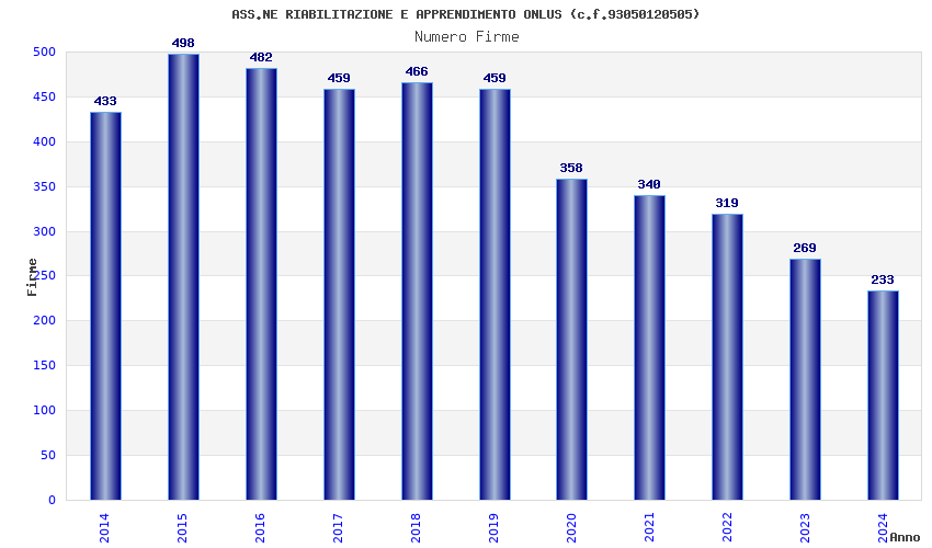 | Anno | Firme | Importi | Media | Naz. | Reg. | Prov. | Comu. |