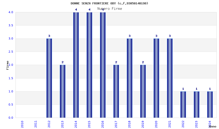 | Anno | Firme | Importi | Media | Naz. | Reg. | Prov. | Comu. |