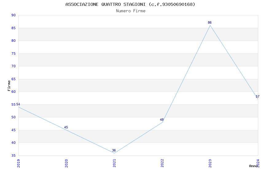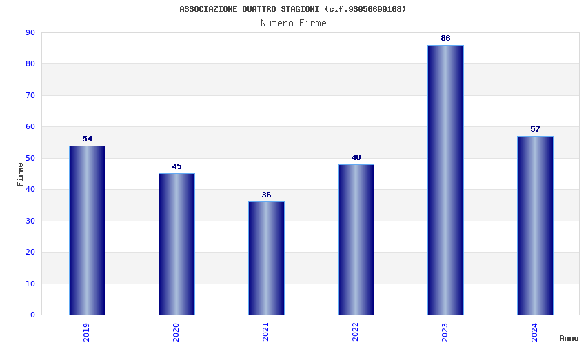 | Anno | Firme | Importi | Media | Naz. | Reg. | Prov. | Comu. |