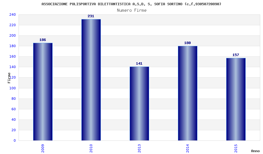 | Anno | Firme | Importi | Media | Naz. | Reg. | Prov. | Comu. |
