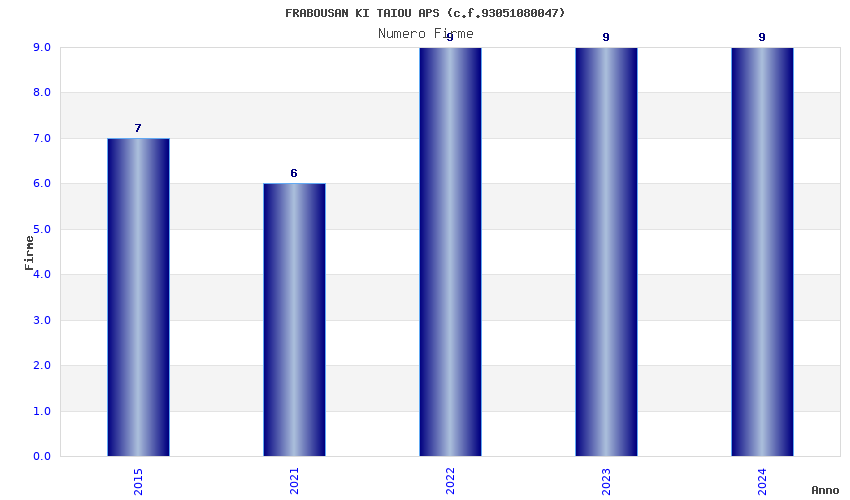 | Anno | Firme | Importi | Media | Naz. | Reg. | Prov. | Comu. |