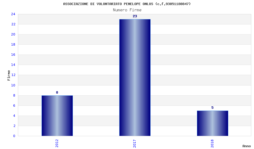 | Anno | Firme | Importi | Media | Naz. | Reg. | Prov. | Comu. |