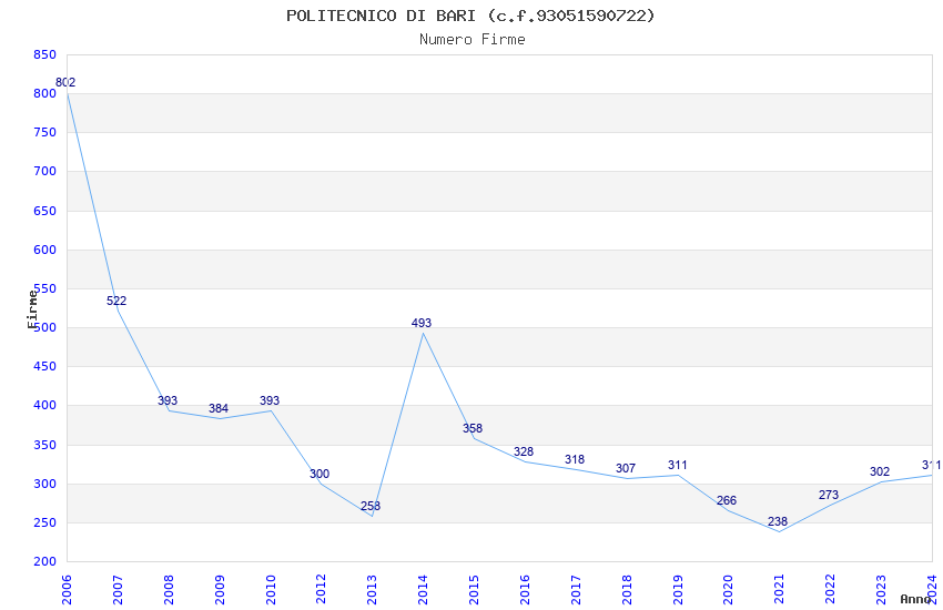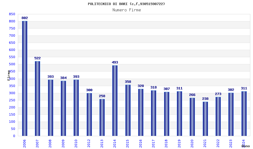 | Anno | Firme | Importi | Media | Naz. | Reg. | Prov. | Comu. |