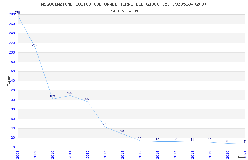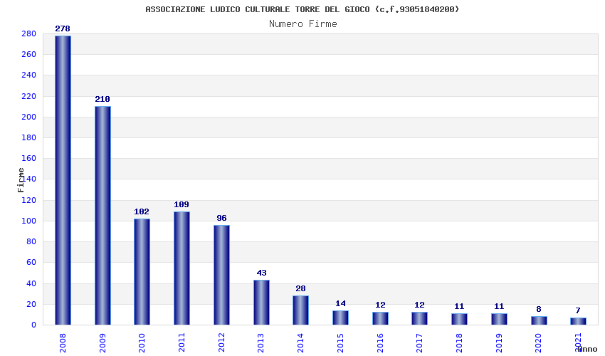 | Anno | Firme | Importi | Media | Naz. | Reg. | Prov. | Comu. |