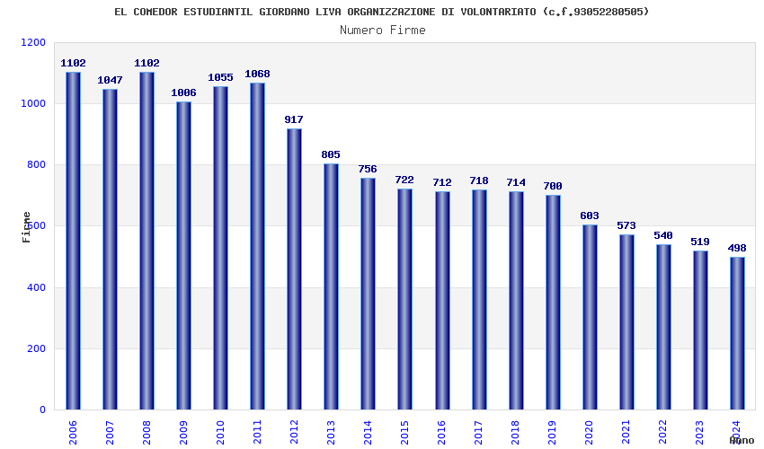 | Anno | Firme | Importi | Media | Naz. | Reg. | Prov. | Comu. |