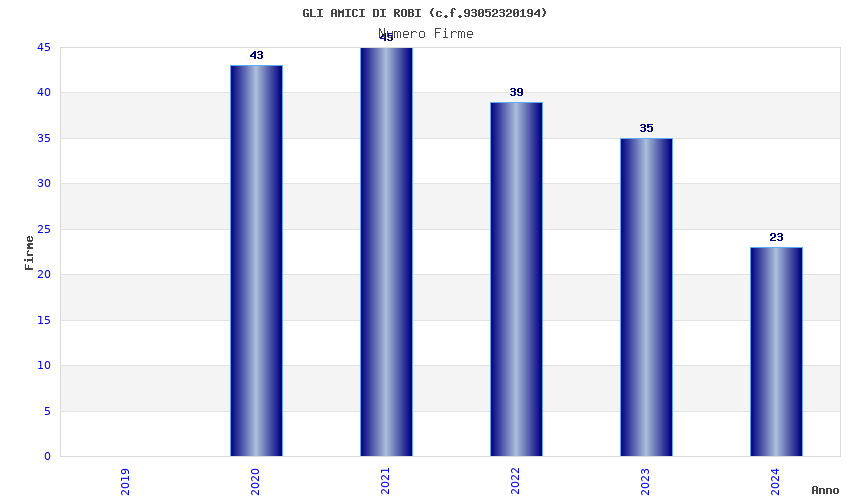 | Anno | Firme | Importi | Media | Naz. | Reg. | Prov. | Comu. |