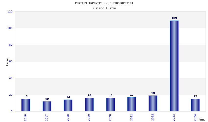 | Anno | Firme | Importi | Media | Naz. | Reg. | Prov. | Comu. |