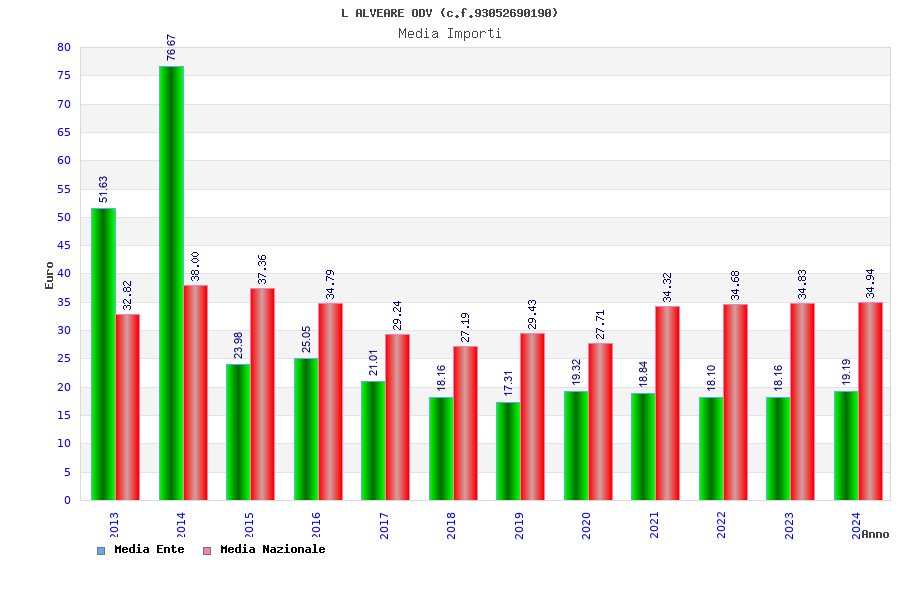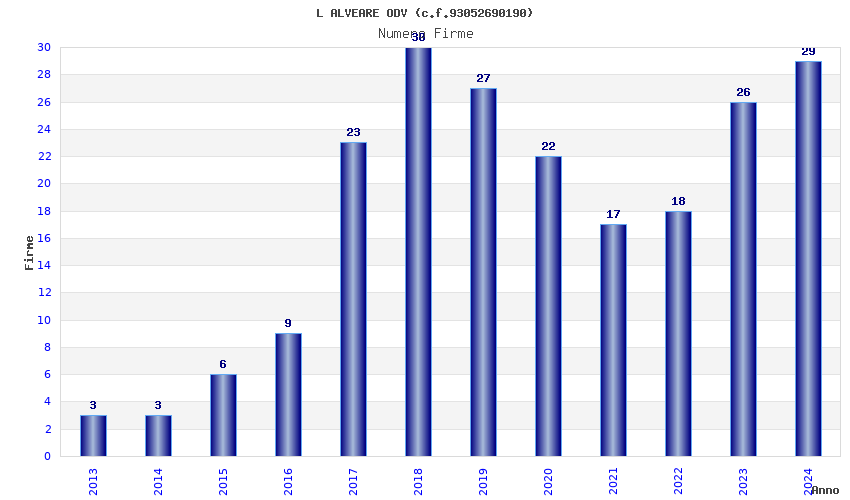 | Anno | Firme | Importi | Media | Naz. | Reg. | Prov. | Comu. |