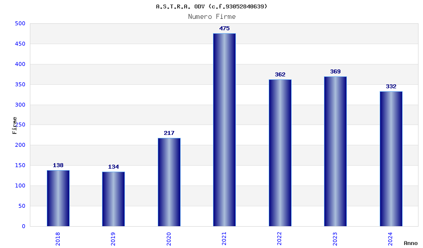 | Anno | Firme | Importi | Media | Naz. | Reg. | Prov. | Comu. |