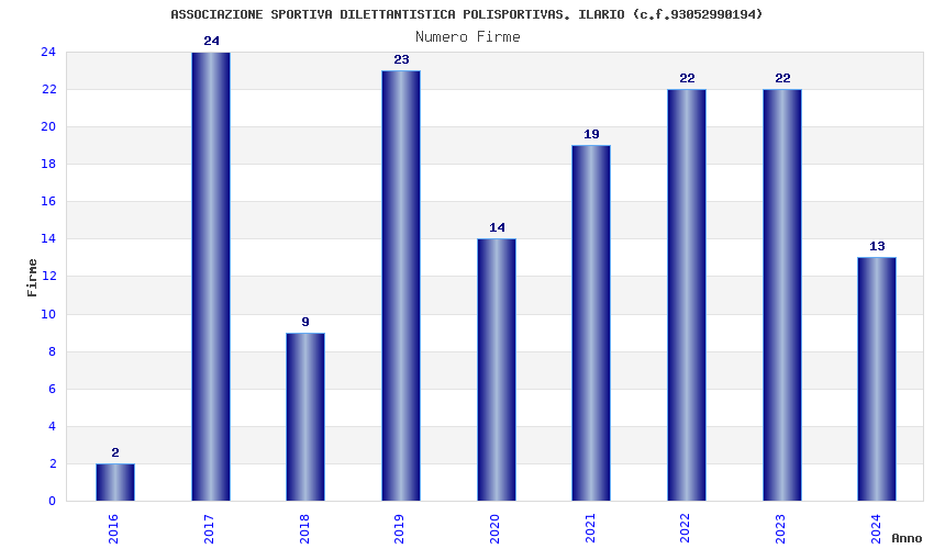 | Anno | Firme | Importi | Media | Naz. | Reg. | Prov. | Comu. |