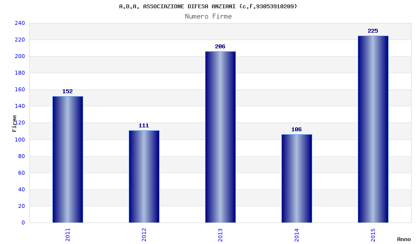 | Anno | Firme | Importi | Media | Naz. | Reg. | Prov. | Comu. |