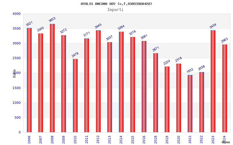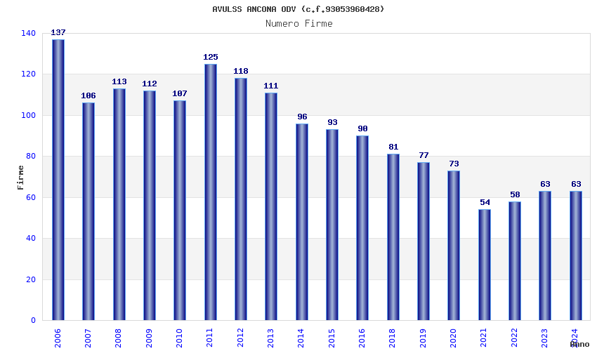 | Anno | Firme | Importi | Media | Naz. | Reg. | Prov. | Comu. |