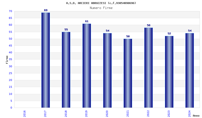| 2017 | 69 | 2.122,12 | 30,76 | 22.587 | 375 | 102 | 25 |