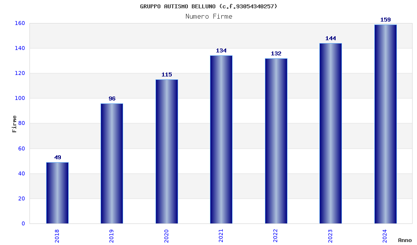 | Anno | Firme | Importi | Media | Naz. | Reg. | Prov. | Comu. |