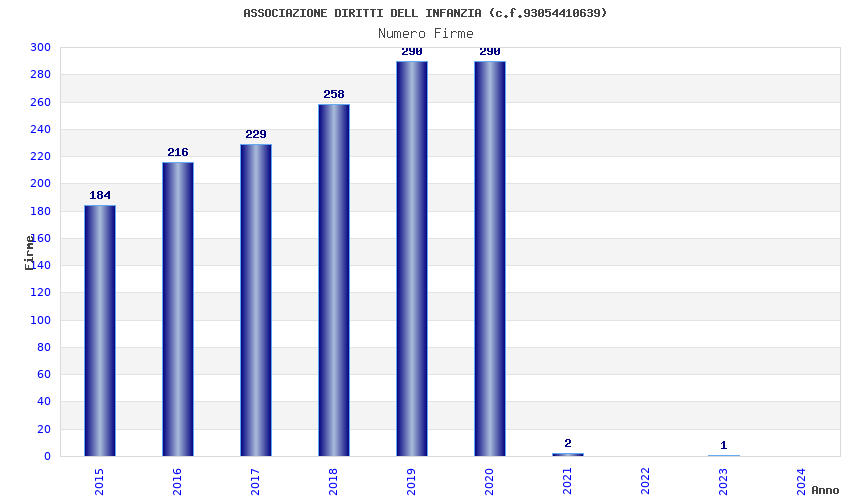 | Anno | Firme | Importi | Media | Naz. | Reg. | Prov. | Comu. |