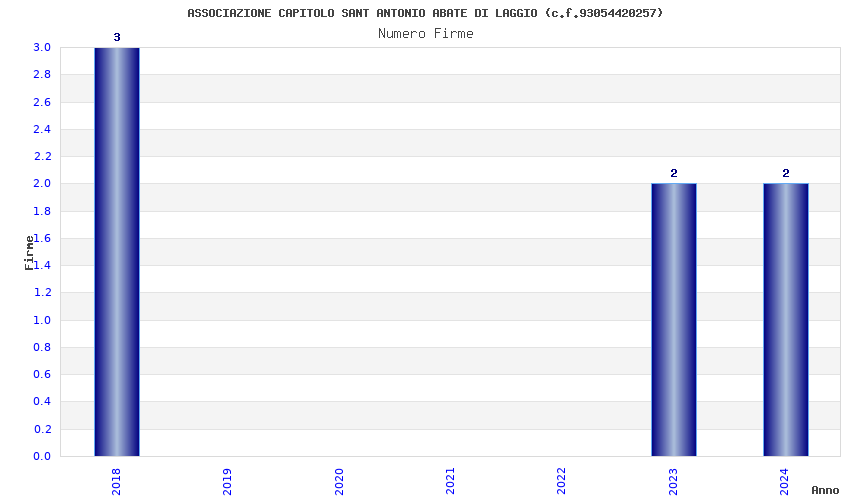 | Anno | Firme | Importi | Media | Naz. | Reg. | Prov. | Comu. |