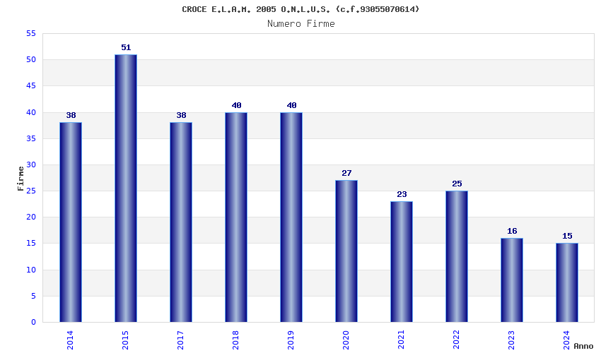 | Anno | Firme | Importi | Media | Naz. | Reg. | Prov. | Comu. |