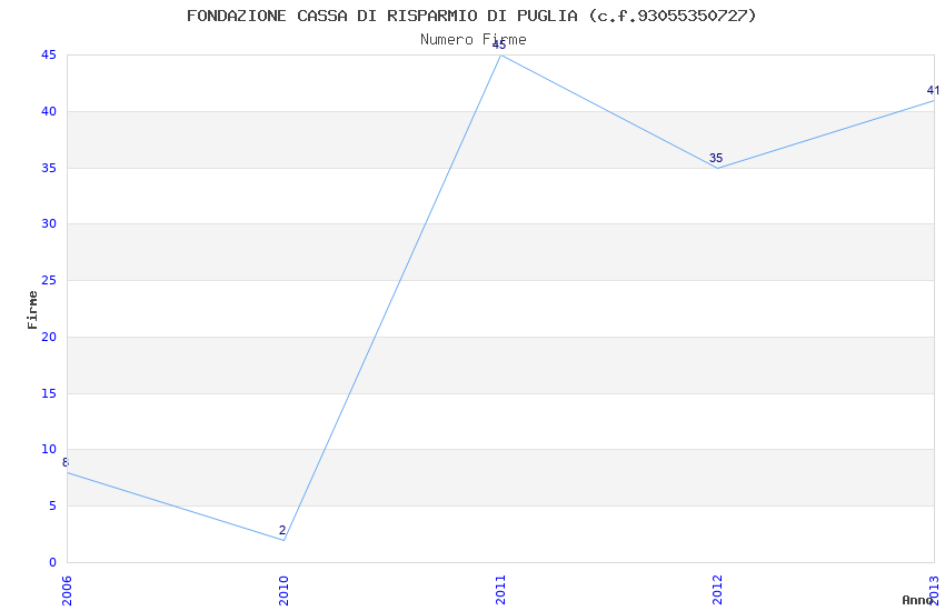 | Anno | Firme | Importi | Media | Naz. | Reg. | Prov. | Comu. |
