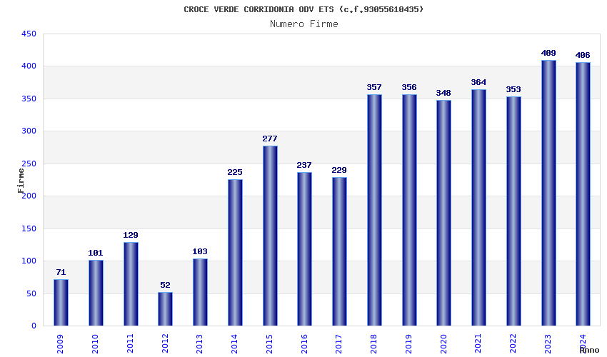 | Anno | Firme | Importi | Media | Naz. | Reg. | Prov. | Comu. |