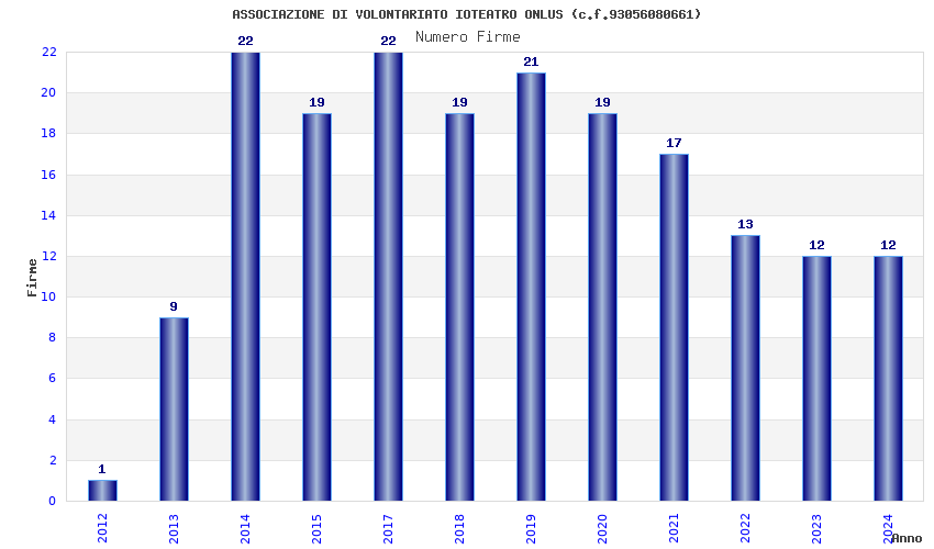 | Anno | Firme | Importi | Media | Naz. | Reg. | Prov. | Comu. |