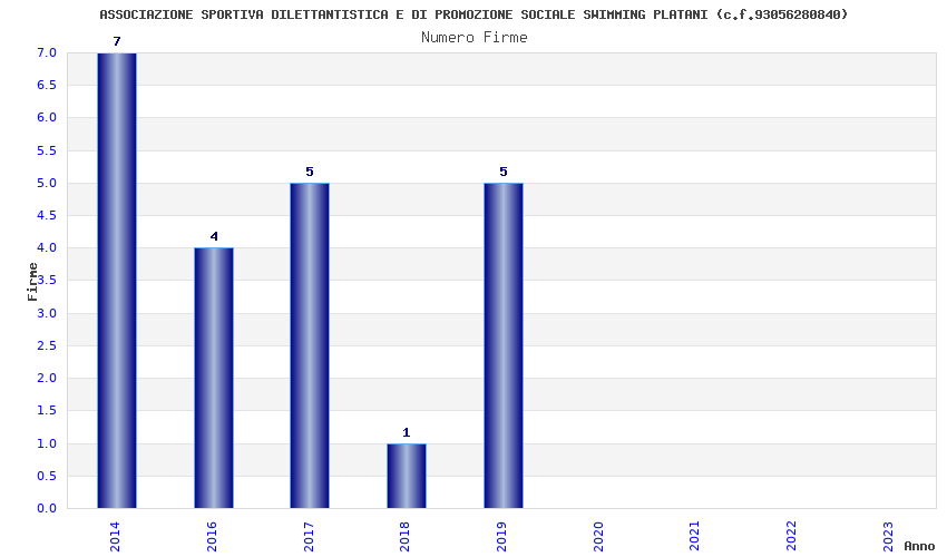 | Anno | Firme | Importi | Media | Naz. | Reg. | Prov. | Comu. |