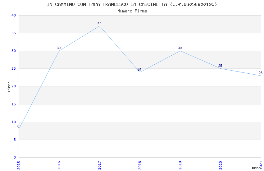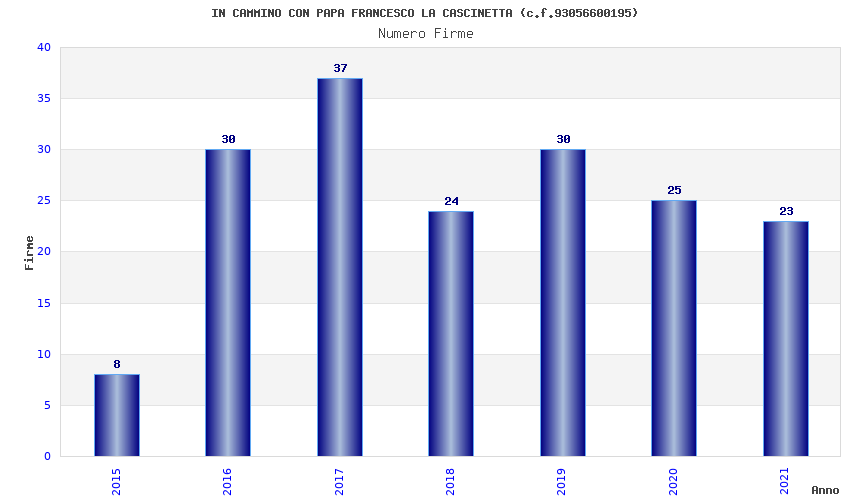 | Anno | Firme | Importi | Media | Naz. | Reg. | Prov. | Comu. |