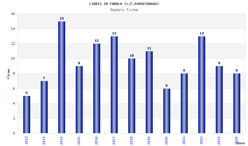 | Anno | Firme | Importi | Media | Naz. | Reg. | Prov. | Comu. |
