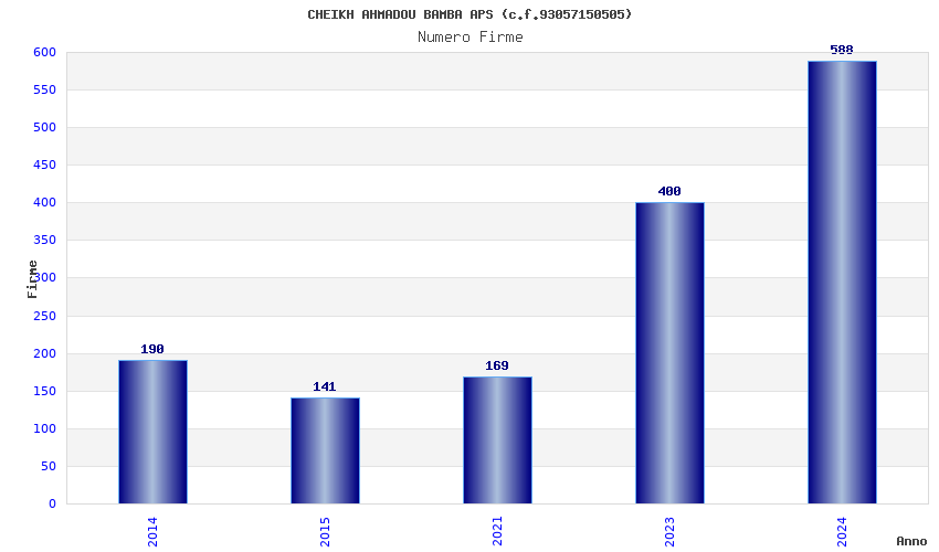 | Anno | Firme | Importi | Media | Naz. | Reg. | Prov. | Comu. |