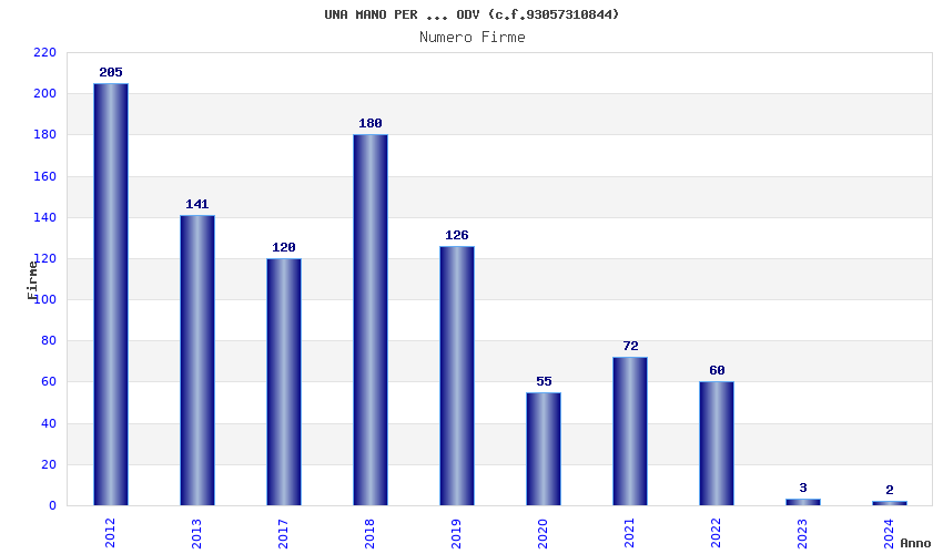 | Anno | Firme | Importi | Media | Naz. | Reg. | Prov. | Comu. |
