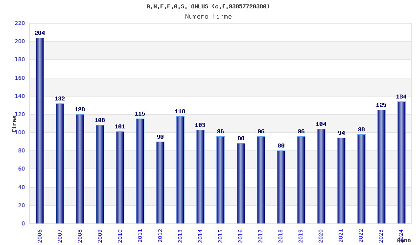 Anno Firme Importi Media Naz. Reg. Prov. Comu.
