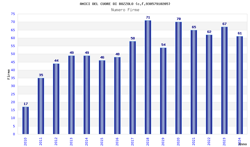 | Anno | Firme | Importi | Media | Naz. | Reg. | Prov. | Comu. |