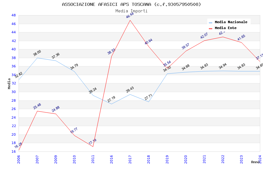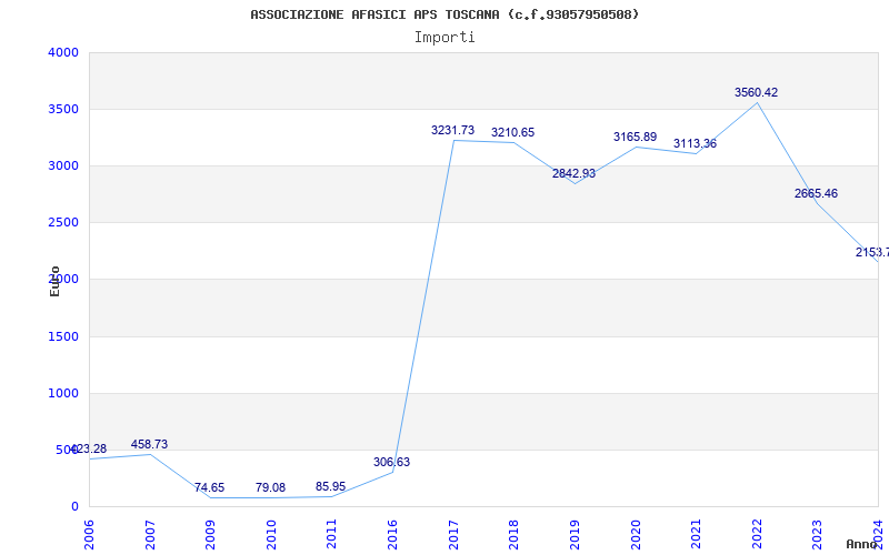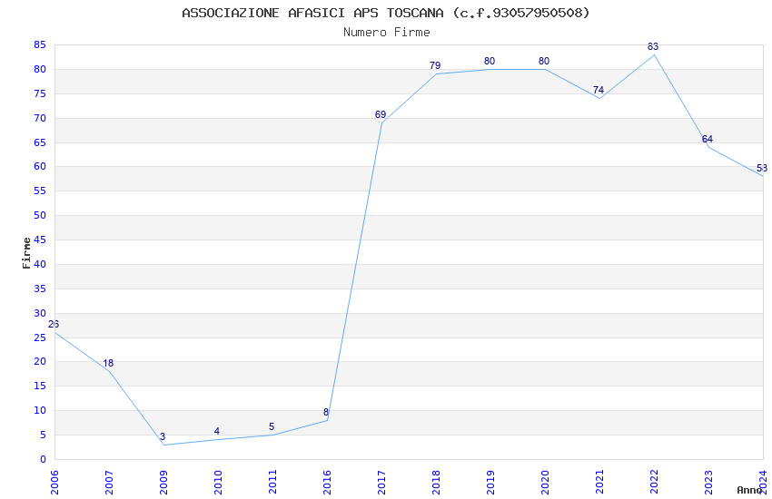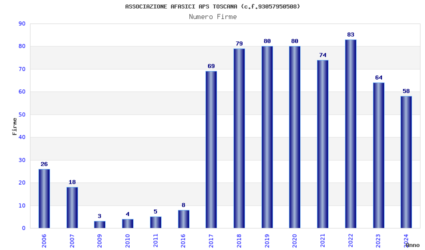 | Anno | Firme | Importi | Media | Naz. | Reg. | Prov. | Comu. |