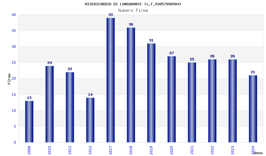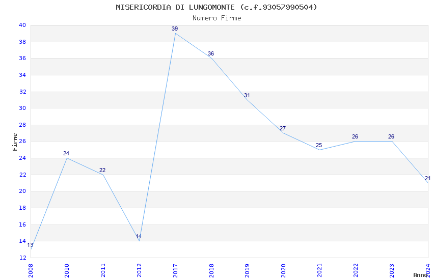 | 2017 | 39 | 1.071,01 | 27,46 | 33.362 | 2.090 | 248 | 10 |