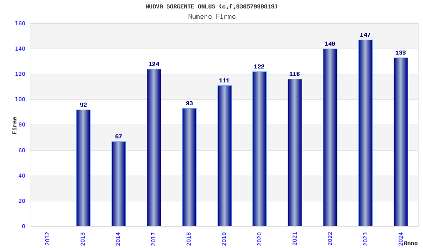 | Anno | Firme | Importi | Media | Naz. | Reg. | Prov. | Comu. |