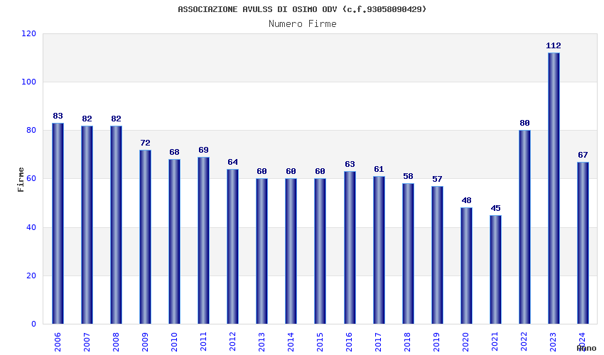 | Anno | Firme | Importi | Media | Naz. | Reg. | Prov. | Comu. |