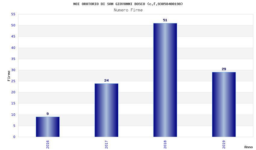 | Anno | Firme | Importi | Media | Naz. | Reg. | Prov. | Comu. |