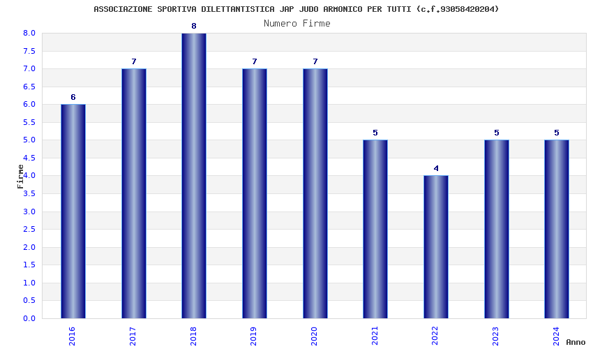 | Anno | Firme | Importi | Media | Naz. | Reg. | Prov. | Comu. |