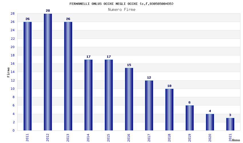 | Anno | Firme | Importi | Media | Naz. | Reg. | Prov. | Comu. |