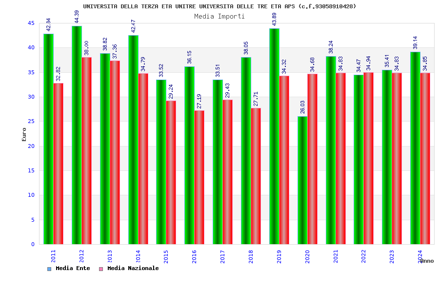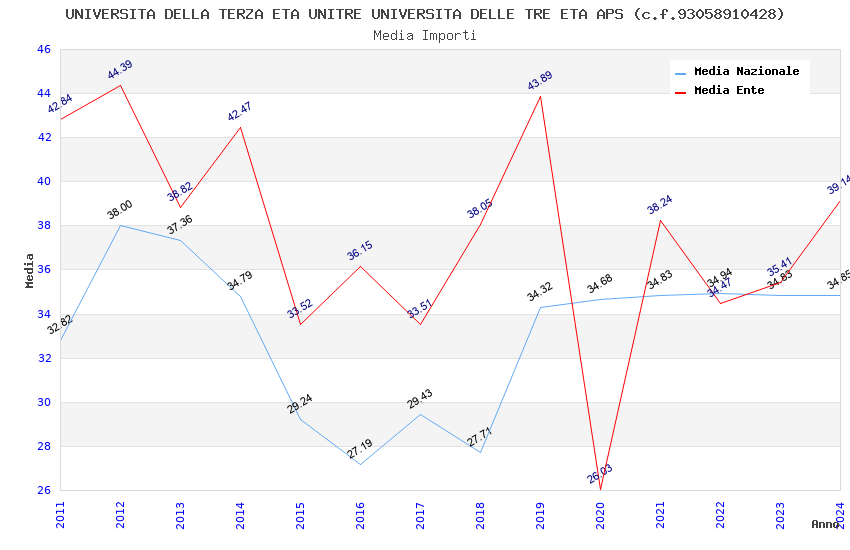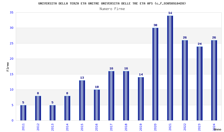 | Anno | Firme | Importi | Media | Naz. | Reg. | Prov. | Comu. |