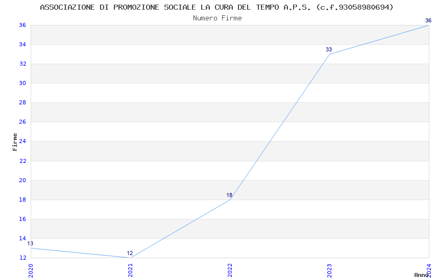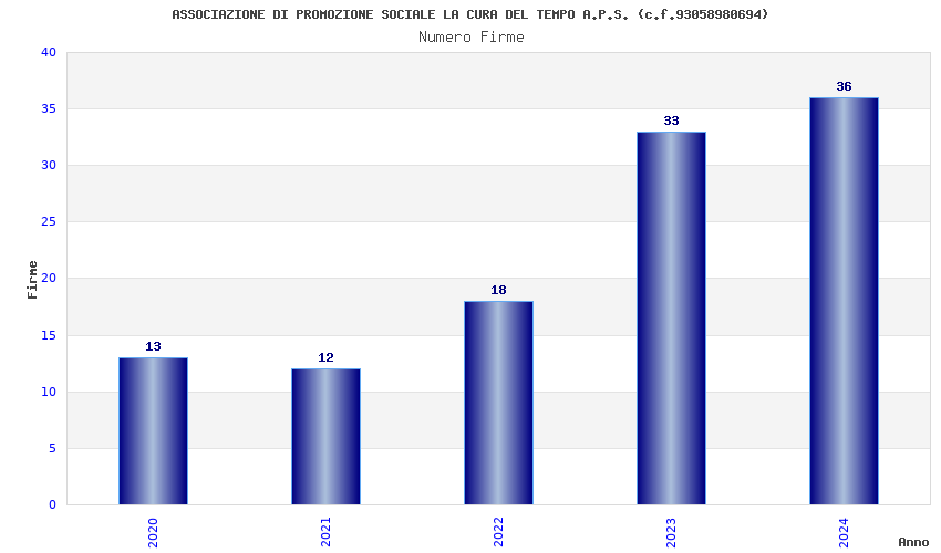 | Anno | Firme | Importi | Media | Naz. | Reg. | Prov. | Comu. |