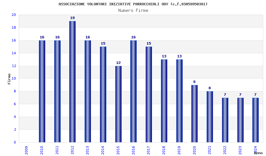 | Anno | Firme | Importi | Media | Naz. | Reg. | Prov. | Comu. |