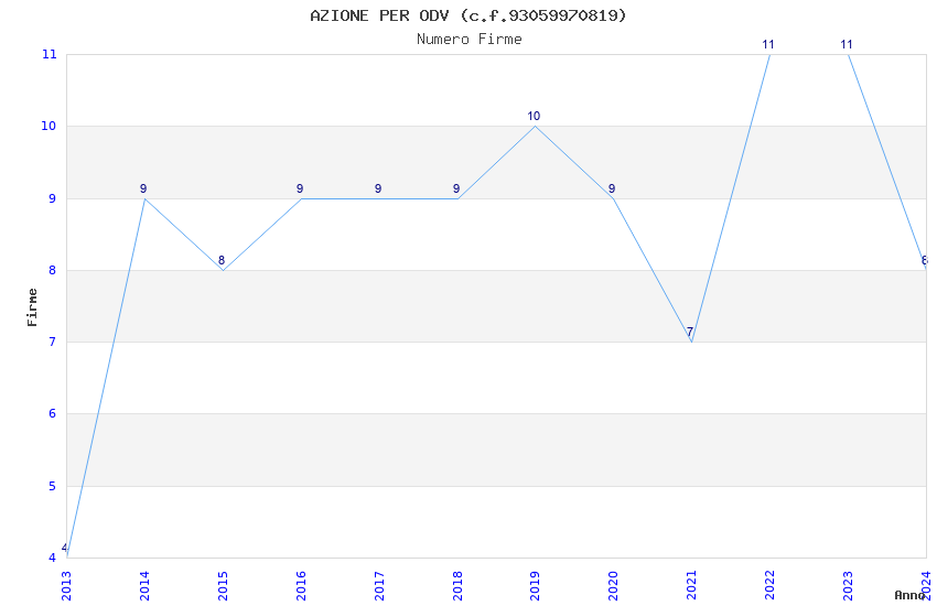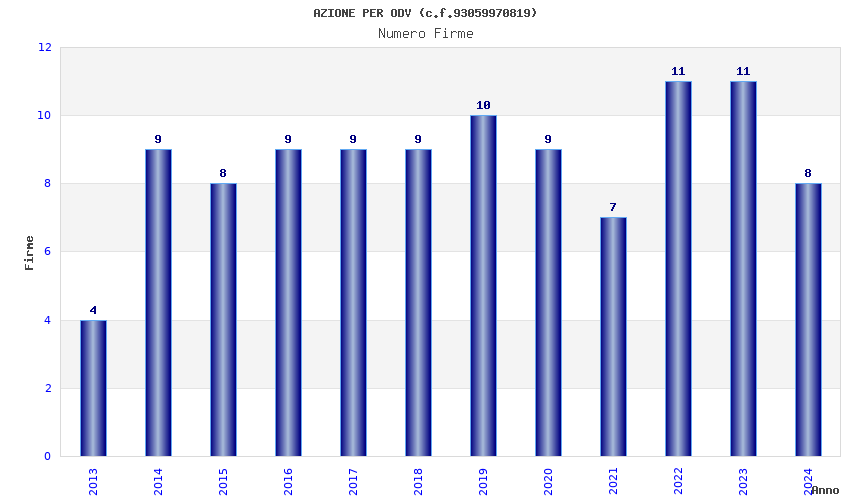 | Anno | Firme | Importi | Media | Naz. | Reg. | Prov. | Comu. |