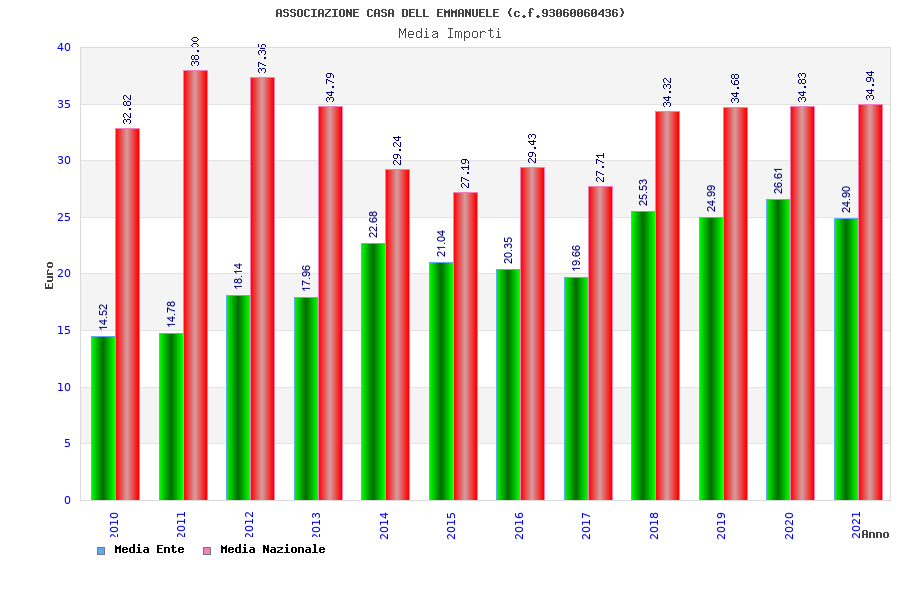 | Anno | Firme | Importi | Media | Naz. | Reg. | Prov. | Comu. |