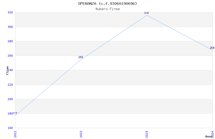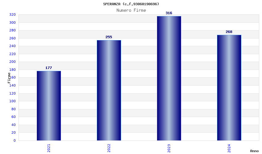 | Anno | Firme | Importi | Media | Naz. | Reg. | Prov. | Comu. |