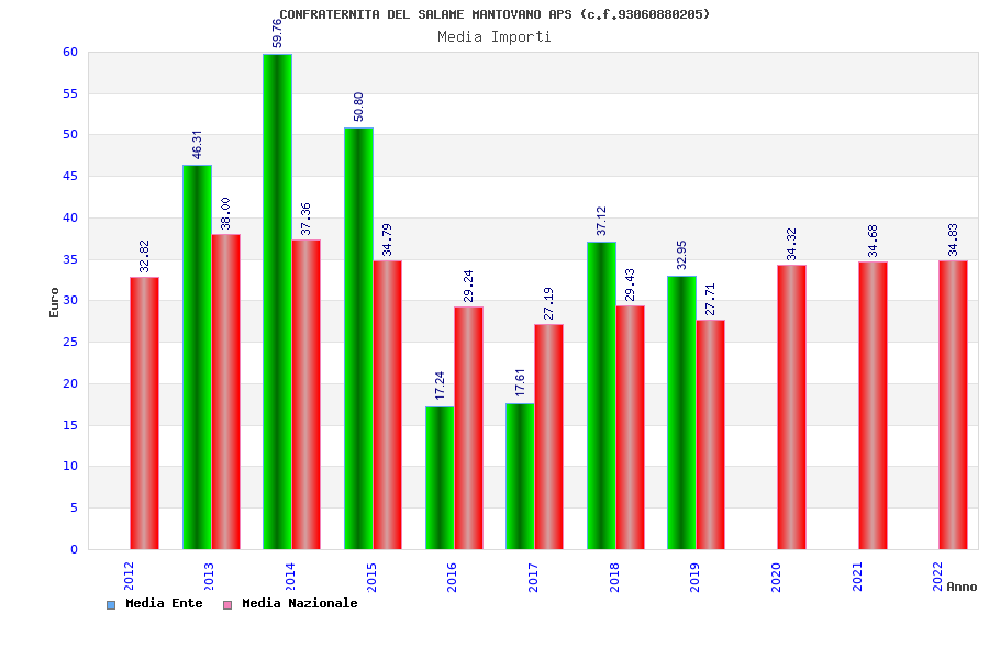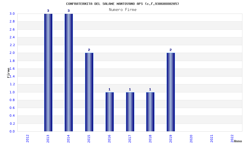 | Anno | Firme | Importi | Media | Naz. | Reg. | Prov. | Comu. |
