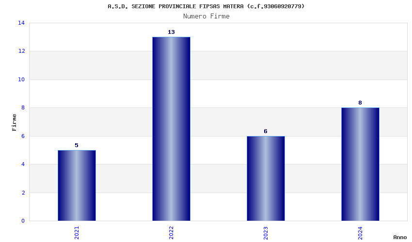 | Anno | Firme | Importi | Media | Naz. | Reg. | Prov. | Comu. |