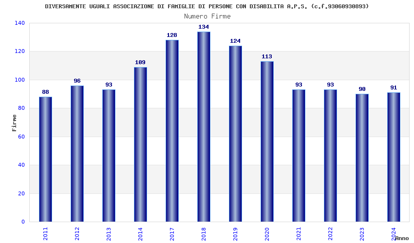 | Anno | Firme | Importi | Media | Naz. | Reg. | Prov. | Comu. |
