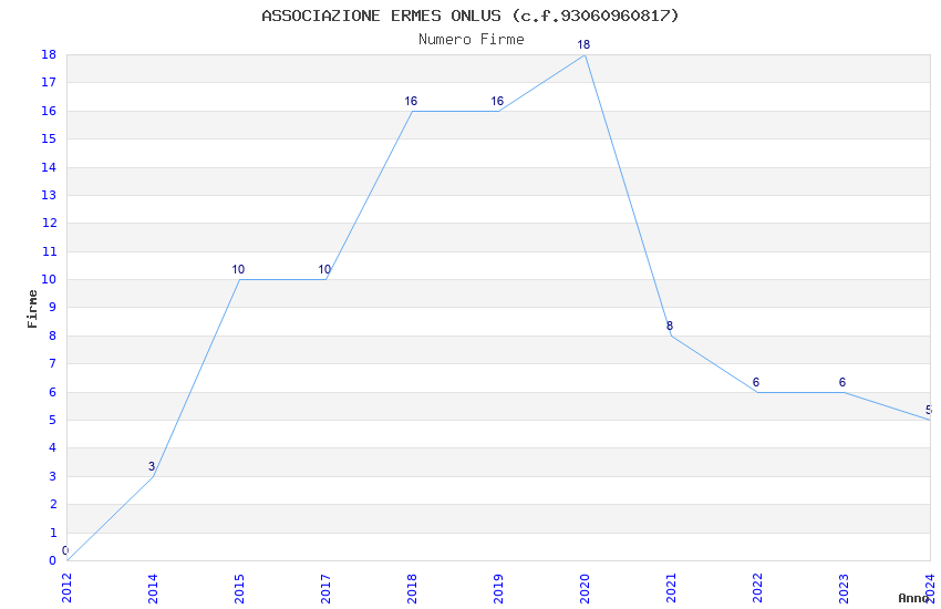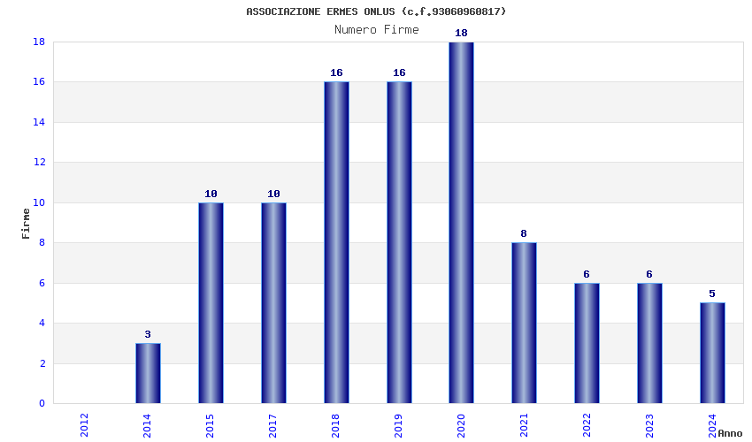 | Anno | Firme | Importi | Media | Naz. | Reg. | Prov. | Comu. |